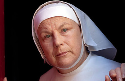 Jenny watches the slugfest alongside a cheering crowd, not quite sure if she should intervene or safely keep her distance, until a full-figured nun steps in, recognizing one of these bruisers as a patient and setting the whole lot of them straight. And this nun is played by none other than Pam Ferris, who is certainly not to be toyed with: